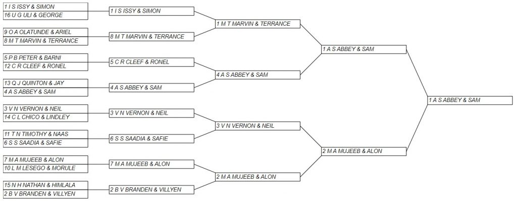 Gauteng Open 2023 2 – 3 September 2023 Group Stages Boys U13 Boys U15 Boys U17 Boys U19 Mens Girls U13 Girls U15 Girls U17 Girls U19 Ladies Knockouts Boys U13 Boys U15 Mens Open Mens 40+ Mens 50+ Girls U15 Girls U17 Girls U19 Ladies Junior Doubles Open Doubles Vets Doubles Final Results Boys U13 Boys U15 Boys U17 Boys U19 Mens Grp Mens KO Girls U13 Girls U15 Girls U17 Girls U19 Ladies Junior Doubles Open Doubles Vets Doubles